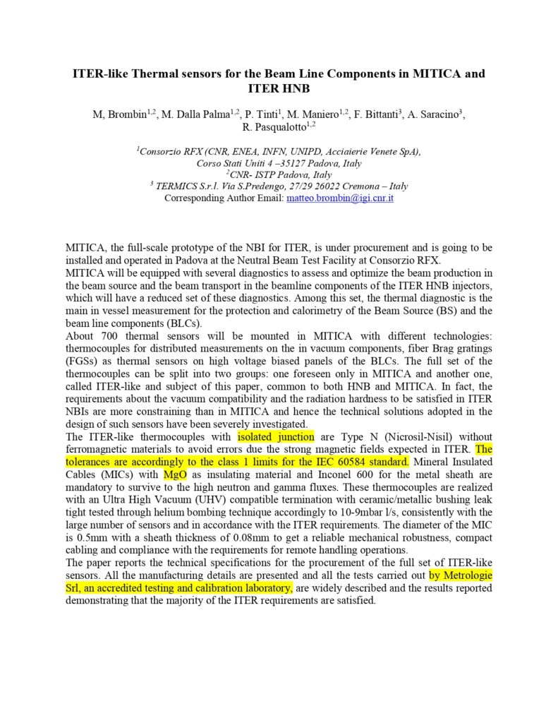 Termics, grazie alle competenze acquisite nel corso degli ultimi vent’anni, ha realizzato i “primi” sensori di temperatura idonei all’applicazione.