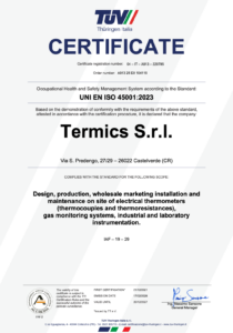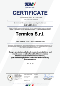 The solutions provided by TERMICS to solve any temperature measurement issue are designed in line with international standards (IEC – ANSI – DIN). Moreover, TERMICS was one of the first companies in Italy to obtain the ISO9001 certification and since 1994 it has been renewing its constant commitment to the ongoing improvement and innovation of products and processes that determine the added value of the service offered.